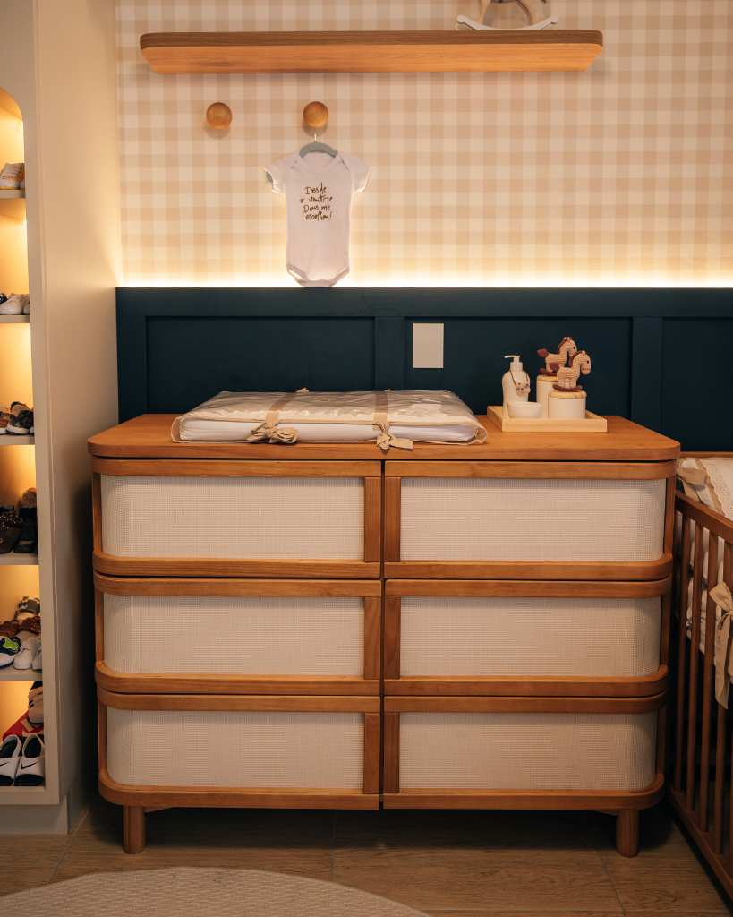 Uma dica para quem está nessa fase é focar em peças-chave, como as cômodas funcionais com trocador, que ajudam a manter a organização impecável desde o primeiro dia.