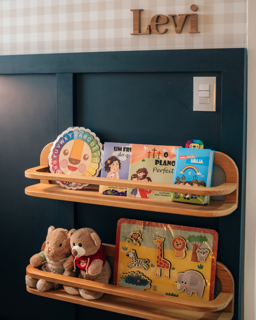 Na montagem do quarto do Levi, o que mais amei foi ver cada detalhe tomando forma. O mais desafiador foi organizar tudo no tempo certo antes da chegada do Levi.