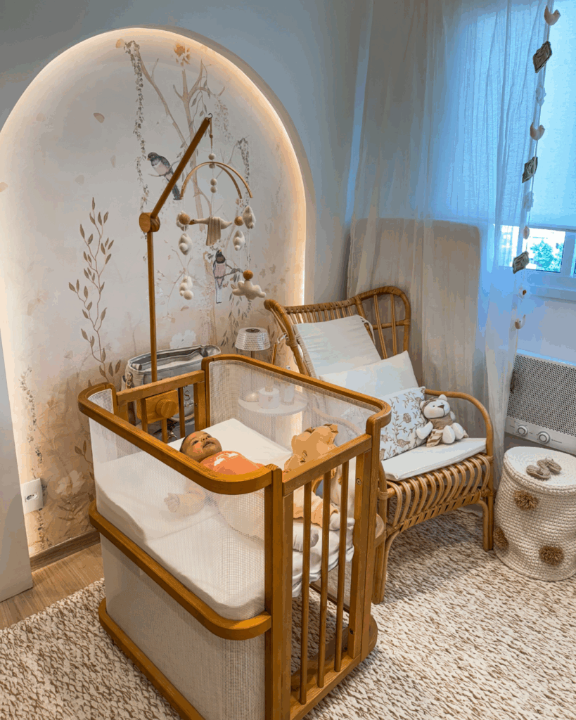 Meu maior conselho é: não foque só na beleza. Um quartinho de bebê precisa acolher. Precisa transmitir amor, calma e segurança. É o primeiro mundo do seu filho, e isso tem um impacto profundo no desenvolvimento dele.
